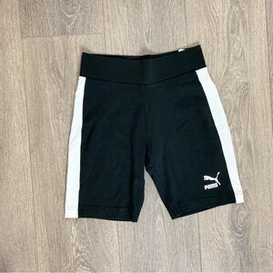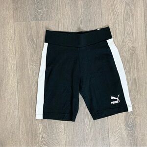 Puma Classics Biker Shorts 7" White Stripe Black High Rise Waisted Size XS