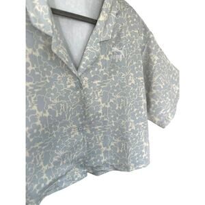 Puma Classics Summer Resort Floral Crop Short Sleeve Button Shirt Womens Blue