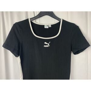 Puma Classics Women’s Black Short Sleeve Scoop Neck Logo Sports Dress L