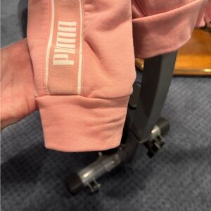Coral jacket with Puma branding. Features front pockets and sleeve logos.