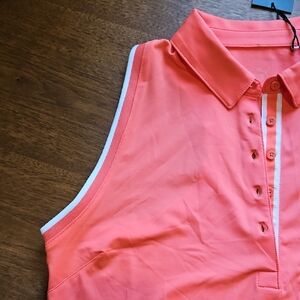 Bright coral tank with buttoned front. Ideal for sporty and casual wear.