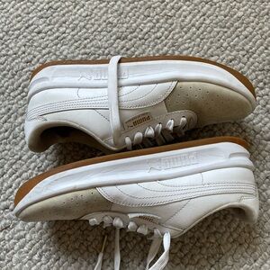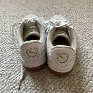 Puma sneakers in cream and white. Sleek design with lace-up closure.