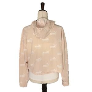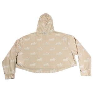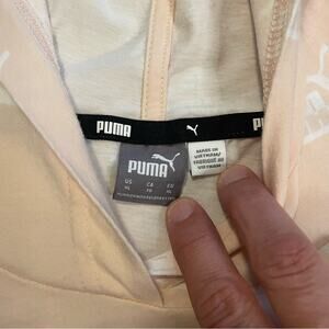 Puma Crop Logo Hoodie Tee Longsleeved Top Women’s size XL Peach Fuzz 100% Cotton