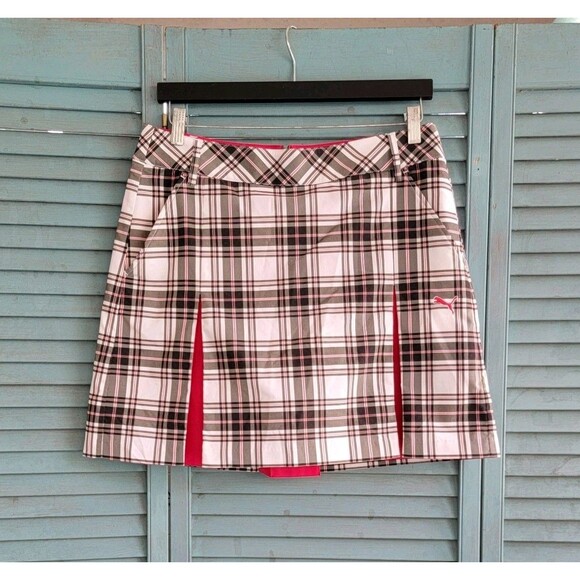 Puma Cute Pull On Pleated Skort ~ Sz S ~ Plaid ~ White, Gray & Pink ~Above Knee