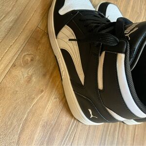 Sleek high-top sneakers by Puma. Black and white design. Ideal for everyday style.