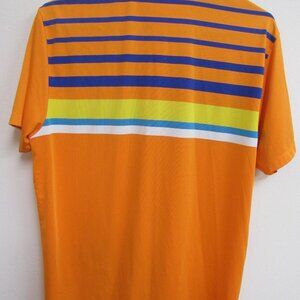 Puma Sport Lifestyle Engineered Stripe Tech multicolor short-sleeve golf polo shirt. Size medium. 21.5" armpit to armpit and 31" top of collar to bottom of hem. Nice condition. 4837