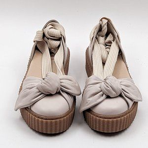 Puma Fenty X Rihanna Women Creeper Bow Cream Leather Platform Sandals size 6.5