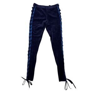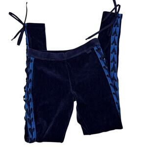Puma Rihanna Fenty velour lace-up leggings in size small. These navy blue leggings feature a soft velour fabric with side lace-up detailing, capturing the iconic Y2K aesthetic.