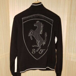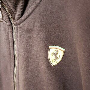 Puma Ferari mens zip up sweatshirt large. Gently used conditionm there are a few grease spots one on chest and sleeve. Measurements are: 27” sleeve, 26 ½" from shoulder to hem, and 24” from armpit to armpit.