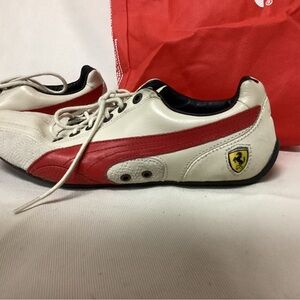 Stylish Puma Ferrari sneakers in white and red. Comes with a matching red tote bag.