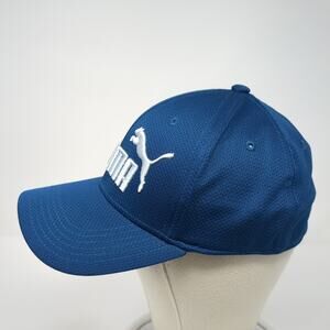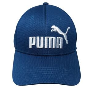 Puma Fitted Baseball Cap Blue XL Lightweight Embroidered Vented Holes 6 Panel