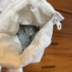 This Puma Scuderia Ferrari women's medium down jacket, full zip jacket perfect for sports racing fans. Down filled. Down filled featuring the iconic Puma logo and Ferrari branding. Size regular medium and is suitable for both men and women.I don't think my son ever wore this. See pics for close ups of sleeve cuffs. No rips, tears or stains. This does not have a hood although there are snaps in the collar where one would attach.