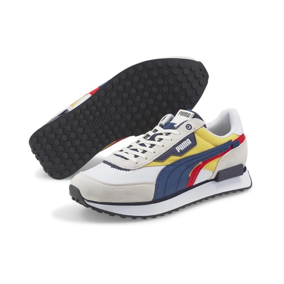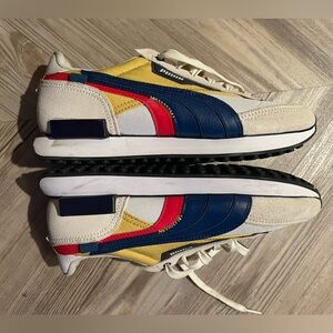 Puma Future Rider. In color Displaced White. Size 8. Not sure if men’s or women. I’d say fits a womens size 8/8.5. Very good condition. Almost new