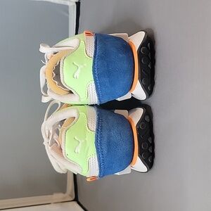 Experience the perfect blend of style and comfort with Puma's blue and green sneakers. These shoes feature a retro design with a mix of suede and mesh materials, offering a sporty and casual look. Ideal for everyday wear, they combine vintage athletic styling with bold color blocking. Back in 1980, the Fast Rider was one of PUMA's most comfortable yet simplistic running shoes, with a super-light design and shock-absorbing outsole. Today, we've revamped the Fast Rider as the Future Rider œ reborn for casual-cool street style with bold material play and color-blocking, a slimmer outsole, and ultra-comfortable Rider Foam. More Details Color: White-Fizzy Lime Royal Style: 371149-75 size 7c Fits a womens 7.5 to 8 These are in great used condition with lots of wear left!