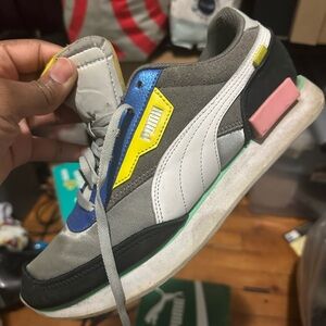 If you are into reconstructing shoes and bringing them back to life then these are for you! these were my favorite pair of puma shoes as they lasted me for about 6 Years!!!! Yes they are wears and a few tears! Please view photos and make sure you are satisfied! NO ODOR! True to size 9 ! I’m SELLING AS SHOWN! Unfortunately I don’t have the time to clean them so please make sure you are comfortable with what is being shown! Box may or may not be included! Final Price. no refund