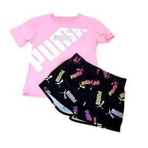 Puma Girls 4 2-Piece Set: Pink T-Shirt & Black Shorts 4166