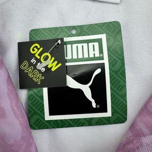 This Puma Girls Full Zip Purple Track Jacket in size XL 16 features a glow in the dark stars pattern, making it a fun yet functional activewear piece.