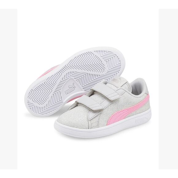 Puma Girl’s Gray Violet & Pink Glitz Glam Smash Sneaker Size 2 New in box