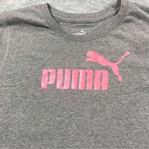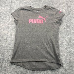 Puma Girls Gray/Pink Short Sleeve Crew Neck Athletic T-Shirt Size XL(16)