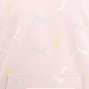 This soft and cozy girls’ hoodie by Puma is perfect for casual wear, school, or play. Designed in a light pink shade with an allover multicolor Puma cat logo print, it features a classic pullover style with a front kangaroo pocket and hood for extra comfort.