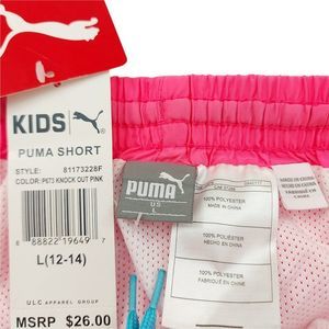 Puma Girls Running Shorts Size Large 12-14 Pink Elastic Waist Drawstring Mesh