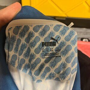 Puma Golf Men's white and blue Pineapples all over Performance polo shirt XL EUC