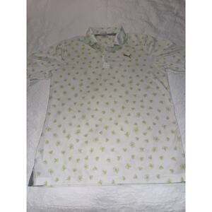 Puma Golf Polo Mattr White Green Spring Sz L Performance Quick Dry Cool Dad Logo