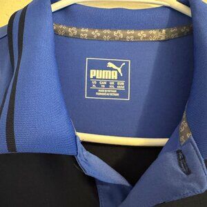 Puma Golf Polo Shirt Blue Black Striped Short Sleeve Size XL