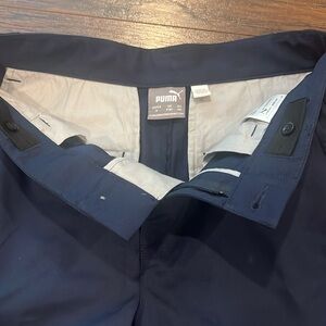 Comfortable navy blue shorts by Puma. Ideal for everyday wear. Perfect for the golf course or a dressy short option for more country club casual occasion. Adjustable waistband.