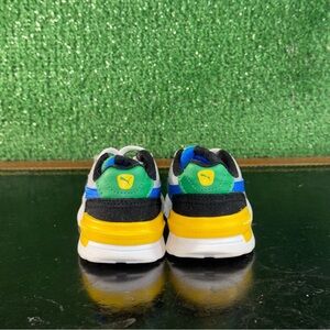 Experience the perfect blend of style and comfort with these Puma sneakers, featuring a striking green and blue color scheme. Designed with a chunky, modern silhouette, these low-top sneakers offer a substantial sole for added support. Ideal for both athletic and casual wear, they bring a fresh and contemporary look to any outfit.