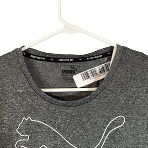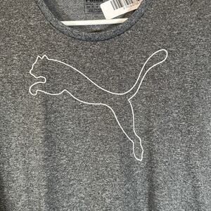 Puma Gray Short Sleeve Casual Athletic White Puma Cat Logo T-Shirt Women Sz M