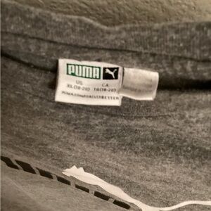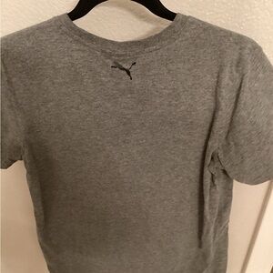 This Puma short sleeve tee in a sleek gray color features a classic crew neck design and a prominent Puma logo on the chest. Made from a soft cotton blend, it offers a relaxed fit perfect for casual wear.