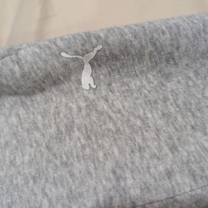 Experience ultimate comfort with these Puma gray sweatpants, featuring a relaxed fit and elastic cuffs for a snug feel. Crafted from a soft cotton/polyester blend, they offer a cozy, fleece-like texture perfect for casual wear. The versatile neutral shade makes them an ideal choice for any laid-back occasion.