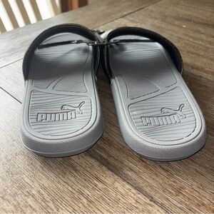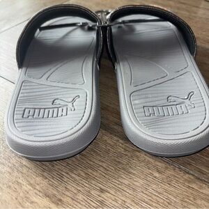 Experience comfort and style with Puma's sporty slide sandals, featuring a sleek gray design accented by vibrant orange branding. The textured footbed ensures a secure grip, while the durable synthetic material offers long-lasting wear. Perfect for casual outings and everyday adventures.