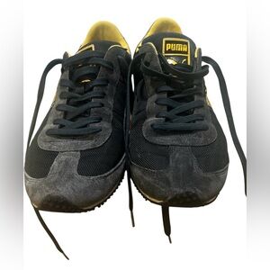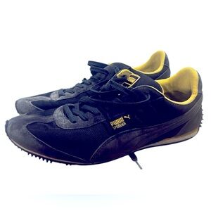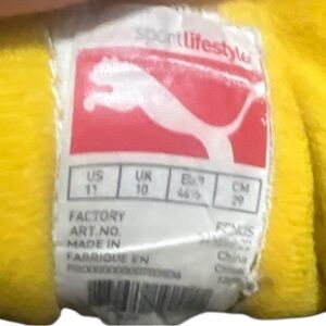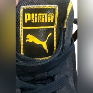 Experience the perfect blend of sporty and casual with Puma's gray and yellow sneakers. These low-top sneakers feature a sleek profile, highlighted by yellow accents and a mixed material upper. Ideal for everyday wear, they offer both style and comfort.(please look at all shoes before purchasing both for the heels have worn down spots