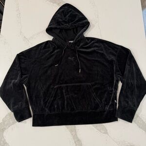 Puma Her Velour Athleisure Hoodie Sweatshirt Women’s Small Black Cozycore Casual