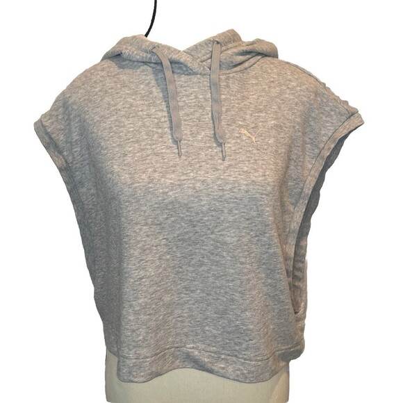 Puma Hoodie Cropped GRAY Sweatshirt Sleeveless Pullover Training Logo Women Med