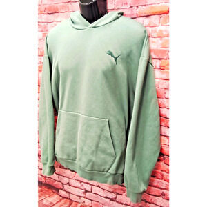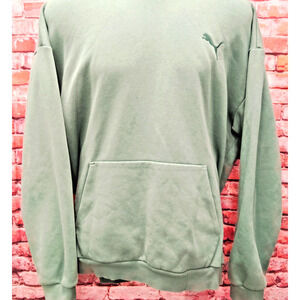 Puma Hoodie Mens Large Green Elevated Logo Kangaroo Pocket Fleece Lined Pullover