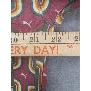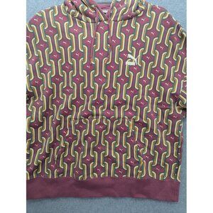 Puma Hoodie Sweatshirt Mens Large Burgundy Retro Allover Print Pullover Cat Logo