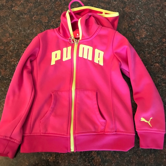 Pink and bright yellow puma jacket. Lined w/fleece so it’s light yet very warm
