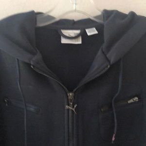 Brand new Puma Hoodie Jacket in dark blue. Zip front with two front zip pockets. Brand new. Size XL. Note: Jacket runs small and fits more to a size large. Fabric: 100% poly.