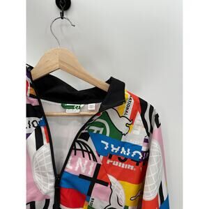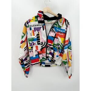 Puma Jacket Women SMALL White Multi International Woven Print Track Full Zip