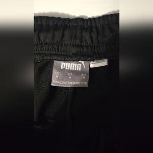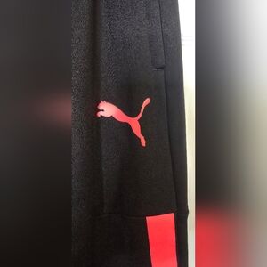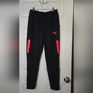 Elevate your style with Puma's sleek black pants featuring a bold stripe. Perfect for both casual and athletic wear.