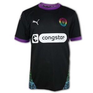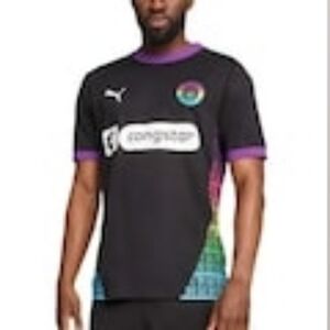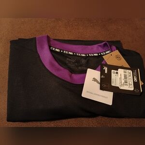 This stylish Puma kids' t-shirt features a bold black and purple design with colorful graphic accents. Perfect for adding a pop of color to any outfit.