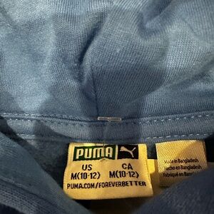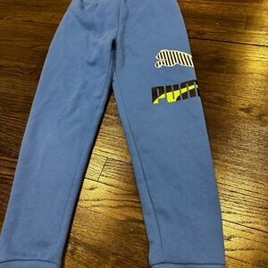 Stylish blue joggers for active kids. Features iconic Puma logo. Perfect for play and comfort.