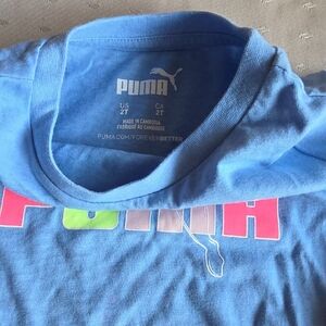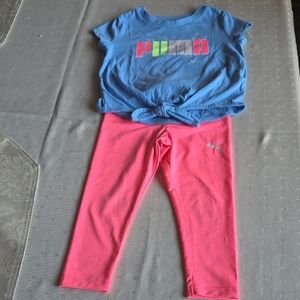 Charming Puma active set with a blue top with PUMA LOGO and pink spandex pants.