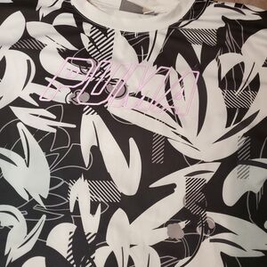 Puma Kids Girls Black White T-Shirt Pink Logo Short Sleeve Top Size M(8-10)