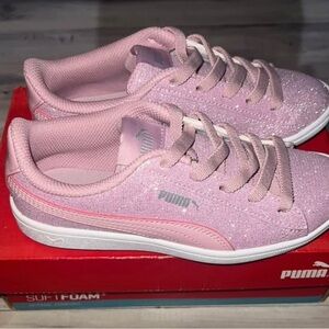 Sparkly pink sneakers for kids. Perfect for play and style. Comfortable fit with a fun design.