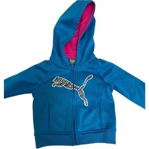 Puma Kids Hoodie - Blue with Pink Size 2T - Zipper Up Front