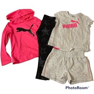 Stylish Puma set with bold black and red colors. Features a sleeve and sleeveless top and matching shorts. Perfect for active kids.